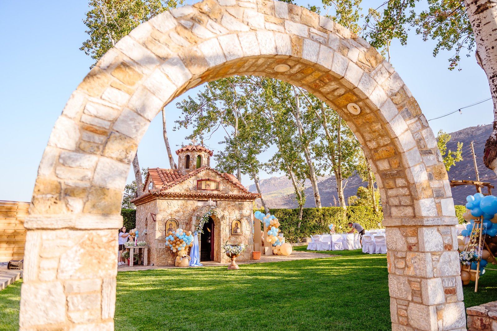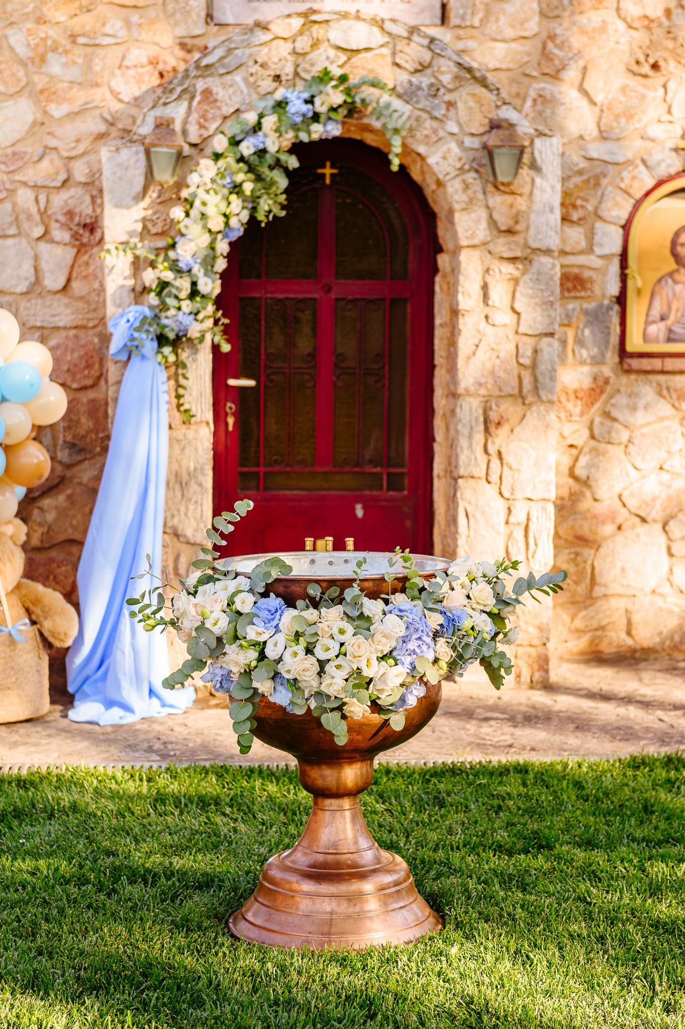 Πληθώρα ιδεών και επιλογών για την διακόσμηση του προαύλιου χώρου της εκκλησίας της κολυμπήθρας αλλά και της δεξίωσης που θα ακολουθήσει. Διαθέτουμε τεράστιο εξοπλισμό,μεγάλη θεματολογία αλλά και εμπειρία στο να δημιουργήσουμε από την αρχή ένα νέο θέμα που θα ταιριάζει στο δικό σας στυλ.